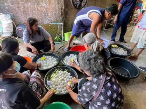 -ให้ความรู้เรื่องอาชีพ พร้อมทั้งฝึกอาชีพ การทำไข่เค็มใบเตยให้แก่กลุ่มเป้าหมาย