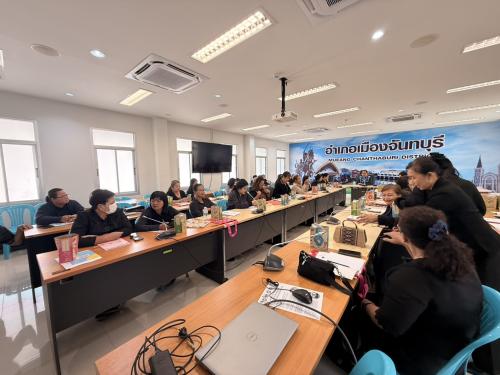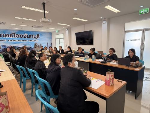 นายเอกนรินทร์ ดำเนินงาม พัฒนาการอำเภอเมืองจันทบุรี พร้อมด้วยเจ้าหน้าที่พัฒนาชุมชนอำเภอเมืองจันทบุรี ดำเนินโครงการเพิ่มประสิทธิภาพ การปฏิบัติงานกองทุนพัฒนาบทบาทสตรีแก่กลไกการขับเคลื่อนกองทุนพัฒนาบทบาทสตรี (กิจกรรมที่ 1)
