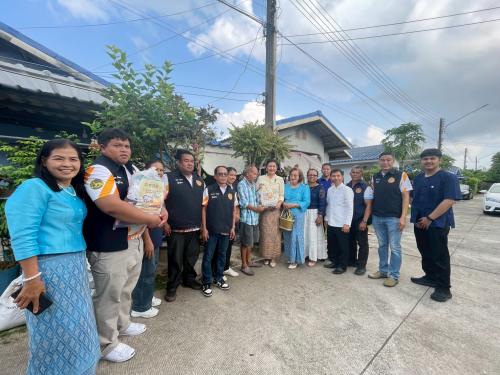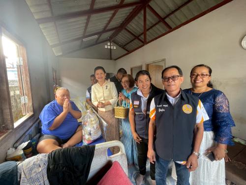 ท้ายสุดของกิจกรรมได้มีการลงพื้นมอบถุงยังชีพให้ครัวเรือนเป้าหมาย และลงเยี่ยมสมาชิกกองทุนพัฒนาบทบาทสตรีโครงการผลิตดินปลูกต้นไม้เพื่อจำหน่าย